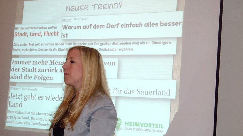 Frau Schmitt, Projektleiterin der Wirtschaftsförderung HSK (Hochsauerland) stellte Ihr Projekt: Heimvorteil HSK vor.